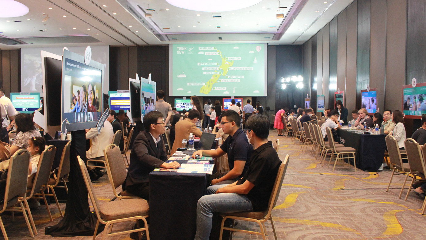 | 30 đơn vị đến từ các trường trung học, đại học, cao đẳng,... có mặt tại ngày hội Giáo dục New Zealand. Ảnh: Hoàng Mai |