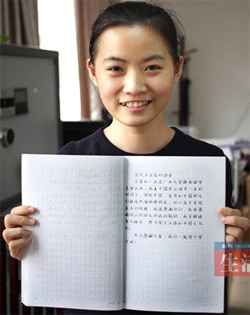 Trước ngờ vực của một số người rằng bức ảnh chụp bài viết của Thủy là không thật, phóng viên đã đề nghị cô viết một đoạn chữ Hán.