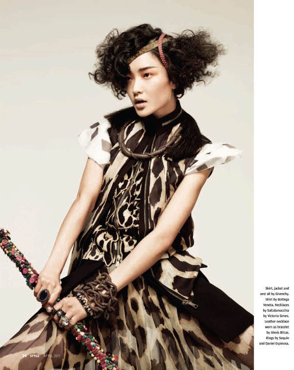Hình ảnh của Du Juan trên tạp chí phong cách SCMP trước ống kính của nhiếp ảnh gia Zach Gold. Siêu mẫu trông thật cá tính trong những trang phục với màu sắc tươi trẻ.