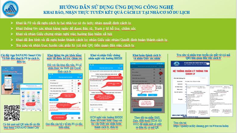Từ ứng dụng DANANG Smart City, du khách bị nhiễm COVID-19 có thể khai báo là F0 và đề nghị cách ly tại nhà, cơ sở lưu trú; nhận quyết định cách ly do cơ quan chức năng gửi trực tuyến (trên ứng dụng, qua tin nhắn SMS, Zalo).