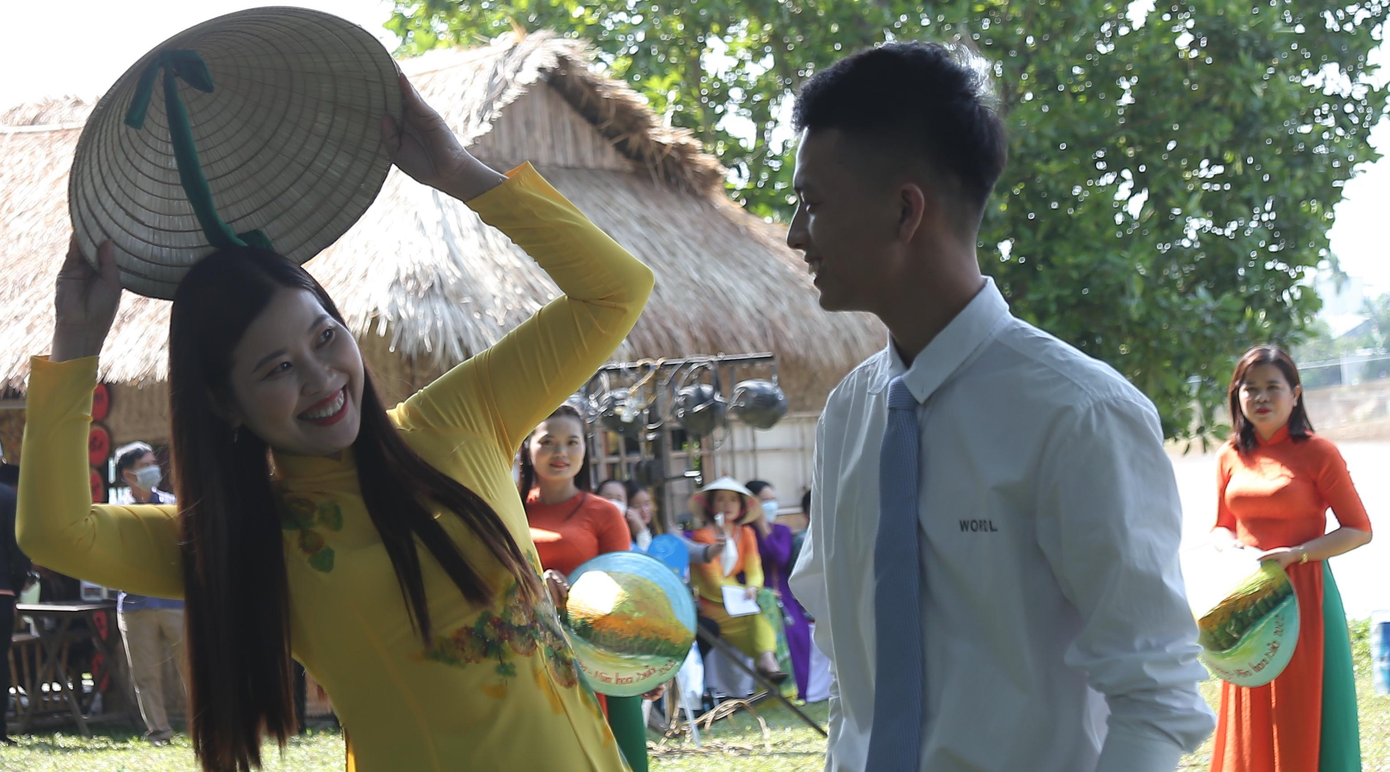 | Chụp ảnh lưu niệm cùng áo dài tại lễ hội. |