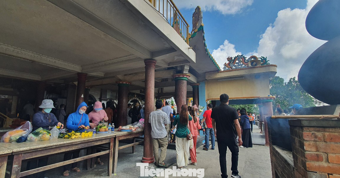 | Tại chùa Bà Đen, khu vực bày lễ, khấn vái luôn nghi ngút khói hương. |