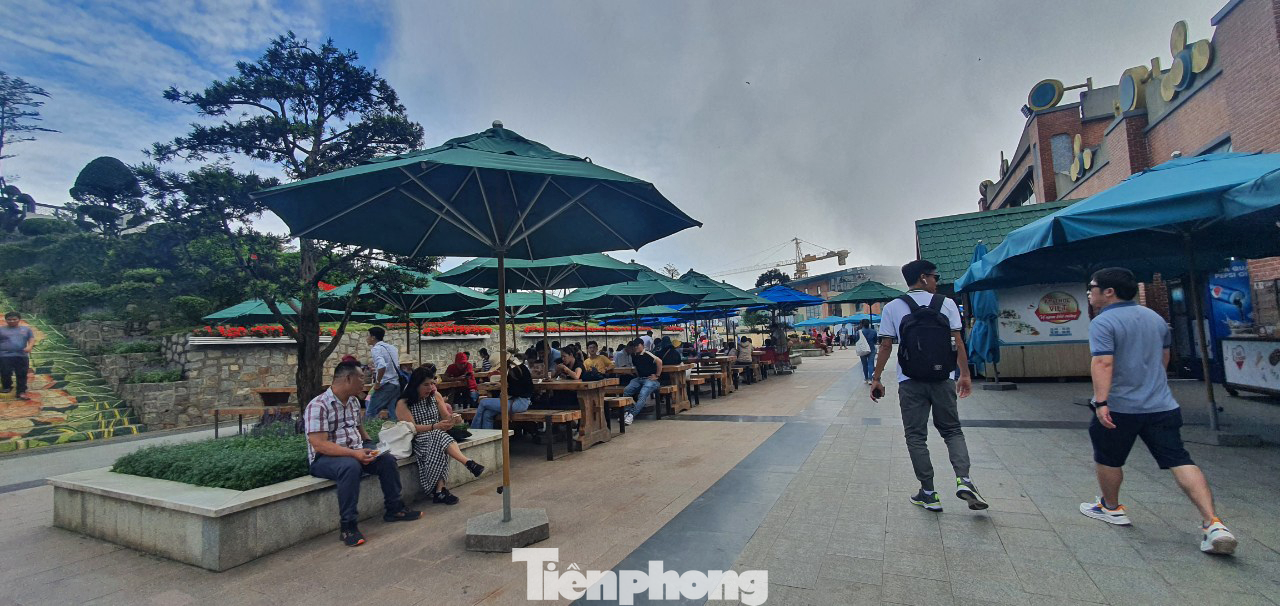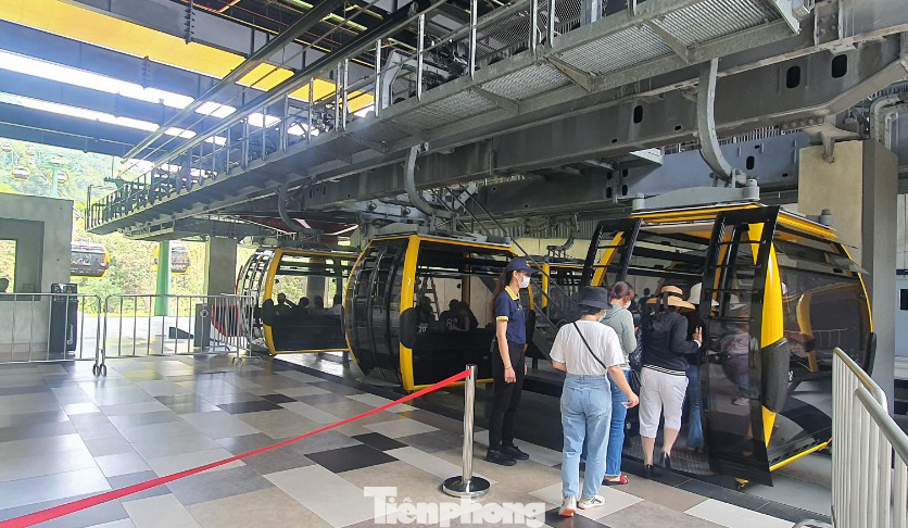 | Bãi đỗ xe cho du khách và xe du lịch dưới chân núi chật ních, các khoang trong cabin cáp treo không còn chỗ trống. |
