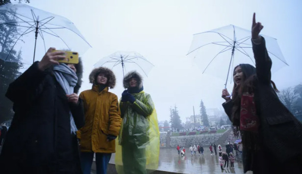 Ngày 1/1, nhiệt độ Sa Pa vẫn ở mức thấp, kèm theo mưa phùn và bị che phủ bởi màn sương dày đặc.