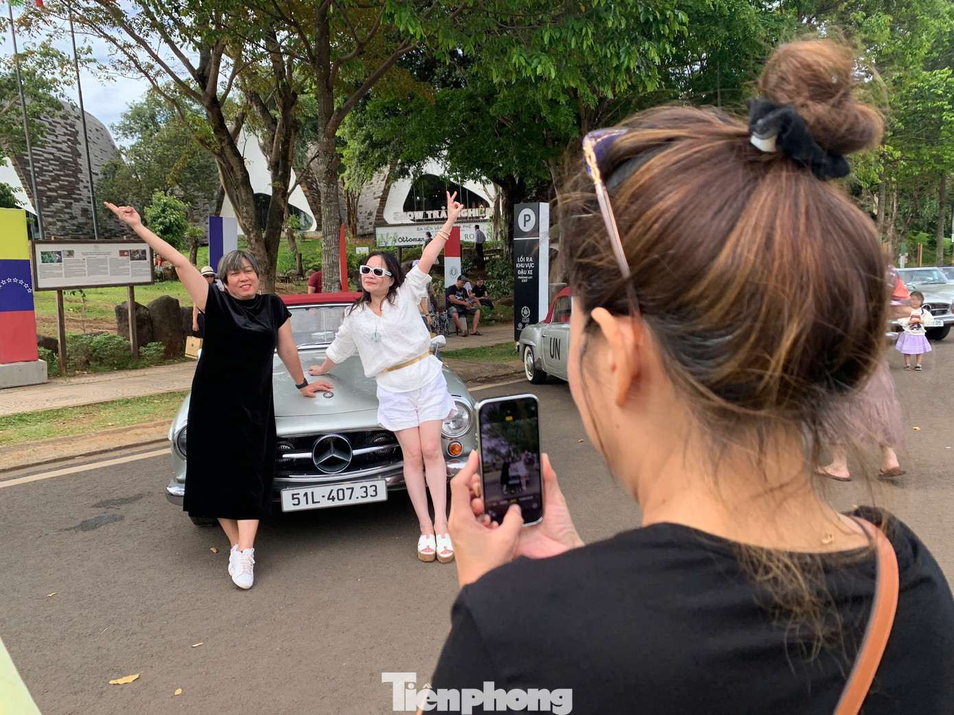| Một du khách đến từ Sơn La check-in cạnh xe cổ Mercedes-Benz 190SL. |