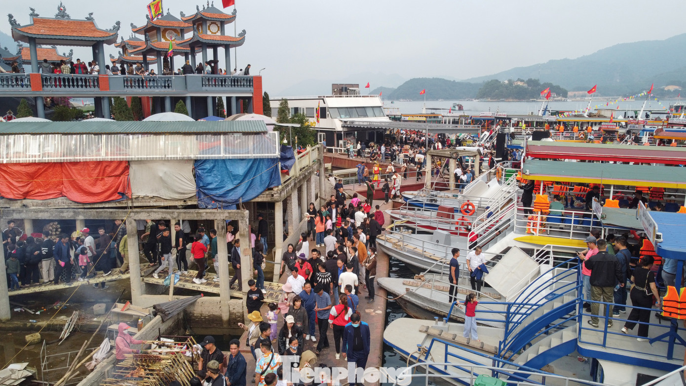 PV báo Tiền Phong ghi nhận trong ngày 18 và 19/2 (tức mùng 9 và mùng 10 tháng Giêng), khu vực cảng Thung Nai tấp nập khách thập phương.