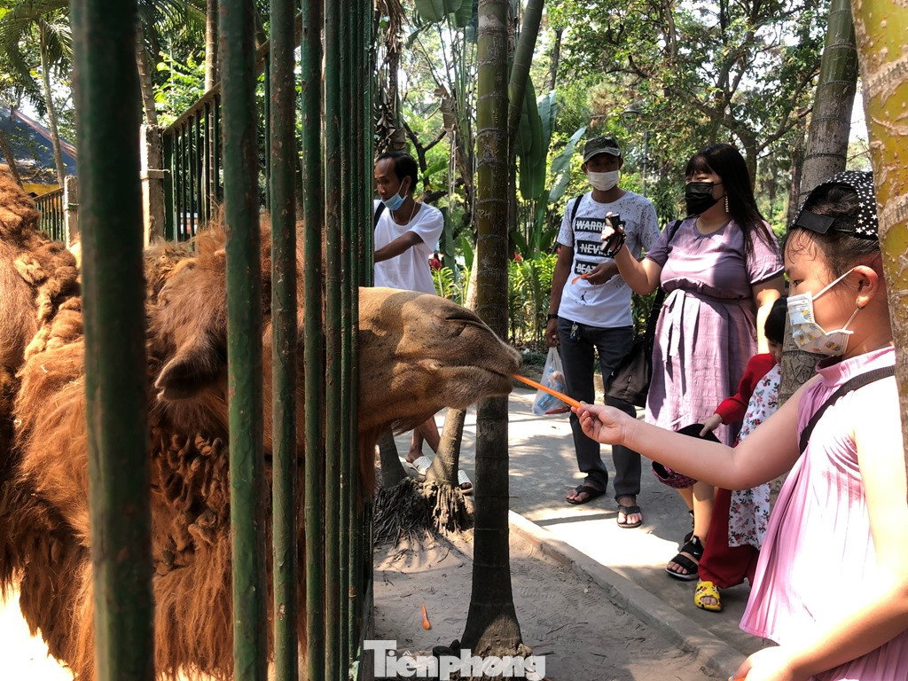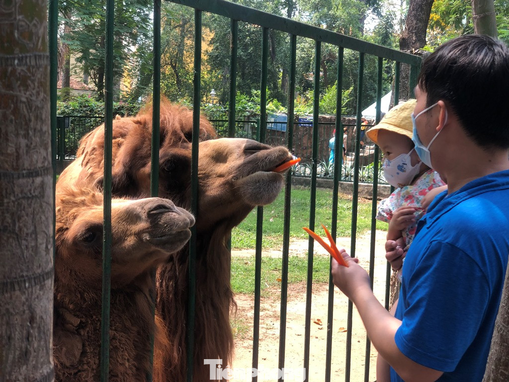 Các em nhỏ đặc biệt yêu mến hai cha con lạc đà (được nhân viên vườn thú đặt tên Anh yêu - Bé yêu).