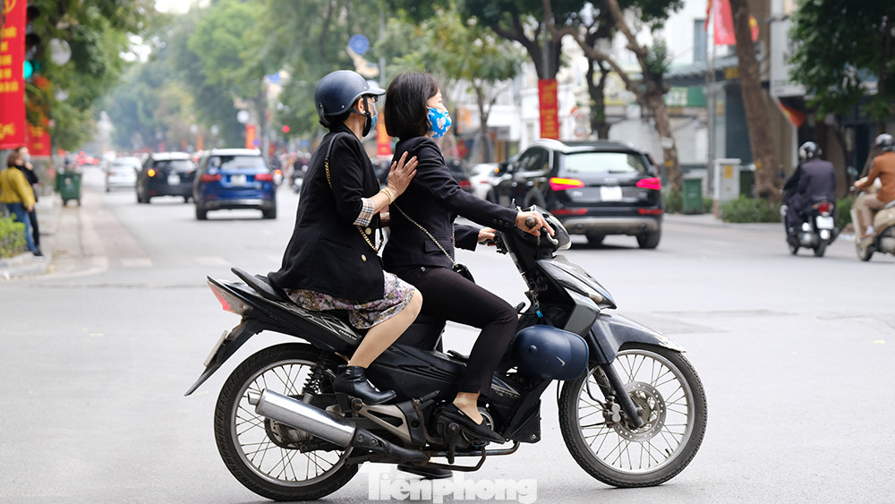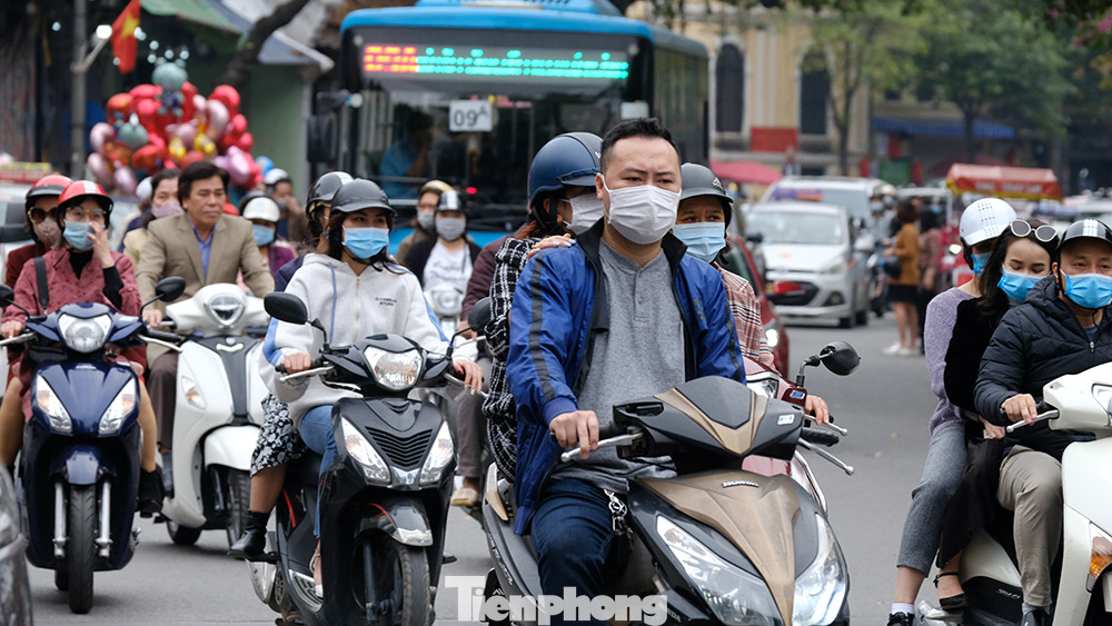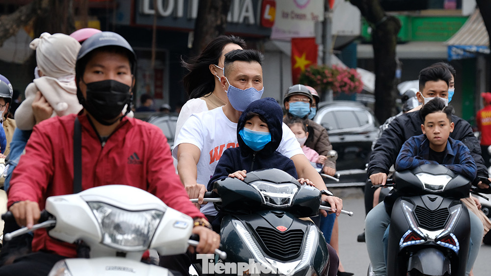 TPO - Hôm nay mùng 2 Tết nhưng ở nhiều tuyến phố Hà Nội đã rất đông đúc, nhiều người đã "quên" đội mũ bảo hiểm và không khẩu trang phòng dịch hoặc đeo không đúng cách.
