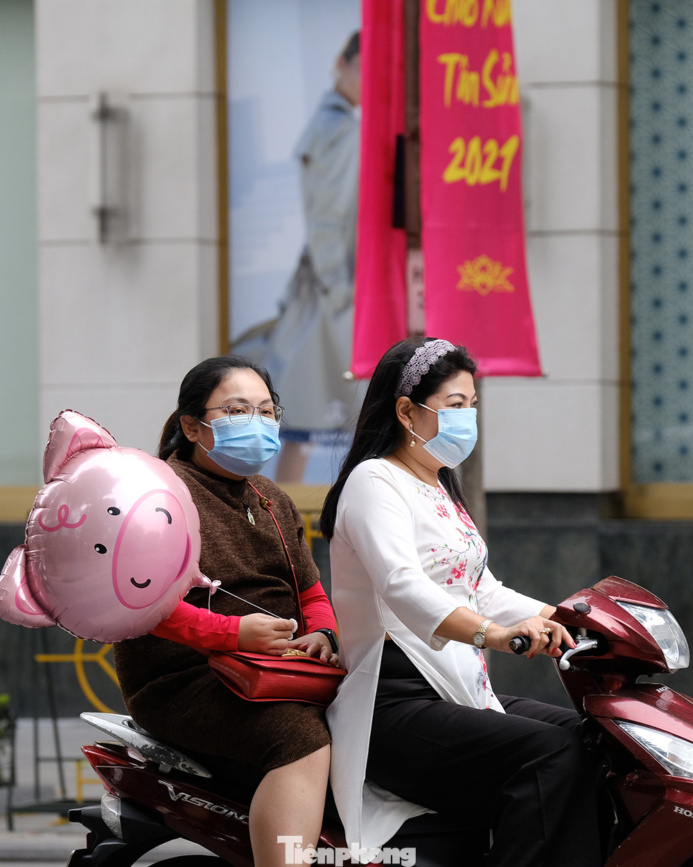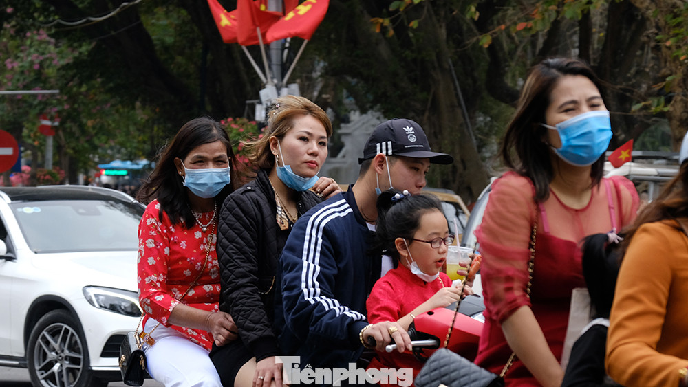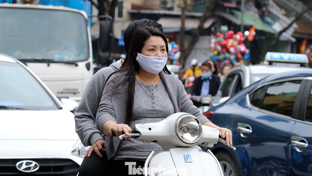 Mặc dù hôm nay mới mùng 2 Tết nhưng rất nhiều tuyến phố của trung tâm Hà Nội rất đông phương tiện. Nhiều thời điểm tại khu vực quanh hồ Hoàn Kiếm xảy ra tình trạng ùn ứ nhẹ. Trên các tuyến phố Hà Nội vẫn xuất hiện cảnh người dân đi xe máy không đội mũ bảo hiểm, đeo khẩu trang phòng dịch nhưng kéo xuống cằm.