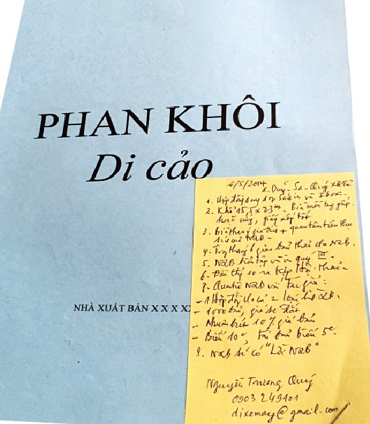Tuy nhiên, di cảo của Phan Khôi còn lại rất nhiều. Người con trai thứ của ông, nhà giáo Phan Nam Sinh bảo quản, gìn giữ di cảo suốt những năm chiến tranh. Năm 1977, anh chuyển vào sinh sống ở Biên Hòa nên giao lại “gia tài” cho mẹ và người em út Phan An Sa vừa từ chiến trường trở về Hà Nội. Từ năm 2008, gia đình Phan Khôi bắt đầu sắp xếp, phân loại khối di cảo của người cha để lại. Hai năm, 2008 - 2009, vợ chồng Phan An Sa làm công việc sao lục, gửi đến các thành viên trong gia đình xin ý kiến đóng góp, sửa lỗi, soạn các chú thích và hiệu đính.