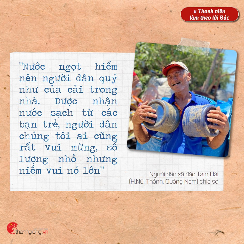 Để người dân xã đảo Tam Hải (H. Núi Thành, Quảng Nam) có nước sạch sử dụng, Huyện đoàn Núi Thành đã tổ chức chương trình "Đưa nước sạch ra đảo" nhằm đáp ứng nhu cầu, niềm mong mỏi của bà con.