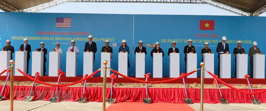 Ngày 5/12/2019, Cơ quan Phát triển Quốc tế Hoa Kỳ (USAID), Quân chủng Phòng không Không quân Việt Nam-Bộ Quốc phòng và Trung tâm Hành động quốc gia khắc phục hậu quả chất độc hóa học và môi trường (NACCET) tổ chức lễ khởi công Dự án xử lý ô nhiễm dioxin tại Sân bay Biên Hòa. (Ảnh: Sỹ Tuyên/TTXVN)