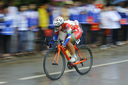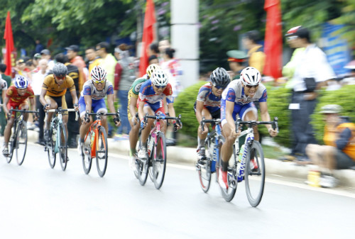Tham dự nội dung thi đấu này có 9 đội nữ và 14 đội nam, đặc biệt sự có mặt của 3 đội đua nước ngoài là Malaysia, Nhật Bản và Đông Timor. Trong ảnh: Các VĐV nữ bám đuổi trên đường đua.