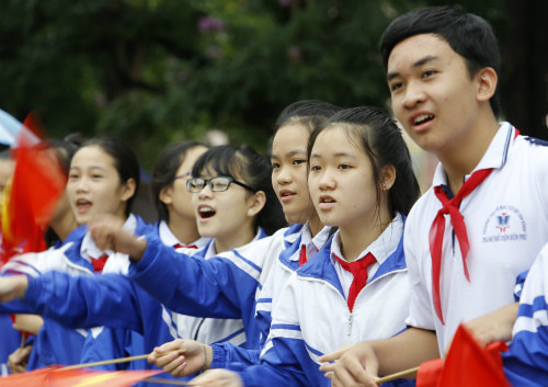 Các em học sinh THCS Tân Bình đến cổ vũ cho các VĐV