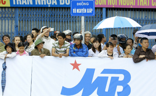 Trên đường Võ Nguyên Giáp hàng nghìn người dân thành phố Điện Biên Phủ hồi hộp theo dõi các CĐV đua tranh.