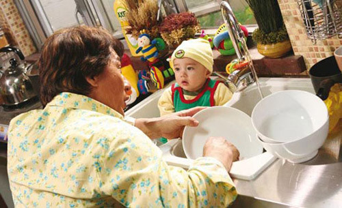 Chuỗi ngày dở khóc dở cười của cả đoàn phim bắt đầu từ đó. Mỗi ngày, Matthew đến trường quay tám tiếng, trong đó có khoảng ba tiếng ngủ. Khi cậu đang "khò", cả đoàn không được phép gây tiếng ồn mà phải ra dấu hiệu với nhau. Lúc đạo diễn muốn Matthew cười thì cậu lại khóc ré lên. Có khi cả ngày chỉ quay được toàn cảnh khóc. Ảnh: Matthew với cảnh quay trong bồn rửa bát.