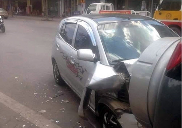 Chiếc Kia của Hiệp gà hư hỏng khá nặng sau tai nạn.