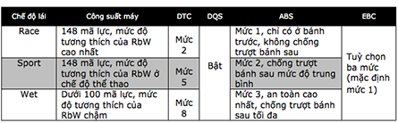 Các chế độ lái của Ducati 899 Panigale cùng các tính năng điện tử hỗ trợ.