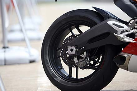 Với tiêu chí mà Ducati dành cho chiếc 899 Panigale vừa là người bạn trong cuộc sống đời thường, vừa là mẫu xe thoả mãn giấc mơ tốc độ trong trường đua (cũng như tiêu chí “Bred for the track and Trained for the road”), Ducati đã yêu cầu nhà cung cấp Pirelli trang bị riêng cho mẫu Supermid này cặp lốp mang tên Diablo Rosso Corsa với đặc tính sử dụng giữa đường đua và đường phố là 50/50 (Pirelli gọi phân khúc sản phẩm của mình là Racing Street), một khả năng thích ứng khá đa dạng, kể cả với tiêu chuẩn trong đường đua chuyên nghiệp.