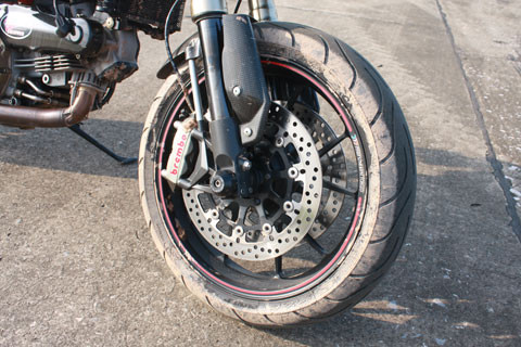 Ducati Hypermotard 1100 có trọng lượng 175kg, cùng với bề ngoài cao lớn nên không hề dễ dàng để dắt hay xoay chuyển.