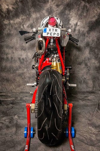 Ở phía sau, chiếc xe có phuộc Ohlins, đèn hậu Montesa, gắp zin của Ducati Monster 1000 cùng chắn bùn và pát biển số do XTR sản xuất.