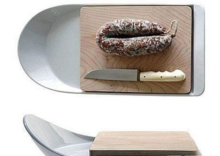 Thớt 2 trong 1. Giống như chiếc thuyền bằng sứ bóng bẩy và đẹp mắt, bên trong lại chứa tấm thớt gỗ với hoa văn không kém phần sang trọng, chiếc thớt giúp bạn xử lý và phân loại nguyên liệu một cách dễ dàng...1/3 diện tích “chiếc thuyền” sứ trắng được lõm xuống giống như một “thùng chứa”. Sau khi cắt thái tất cả nguyên liệu cần chuẩn bị, bạn có thể “lùa” ngay chúng xuống phần lõm này và trút vào nồi, chảo để chế biến một cách nhanh chóng.