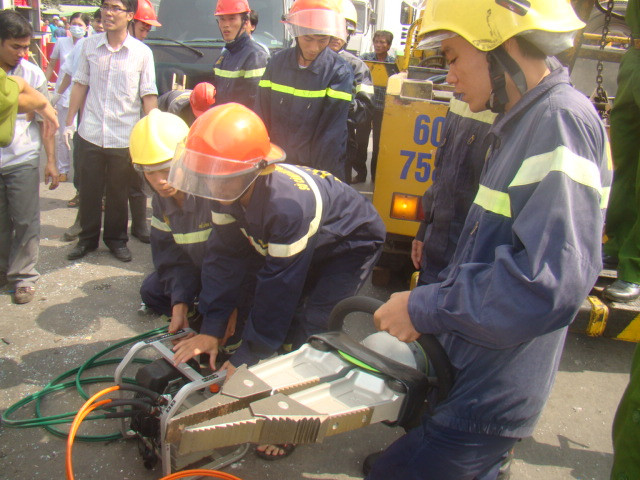 Dùng cưa máy phá xe cứu người sau tai nạn kinh hoàng