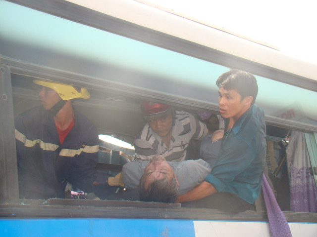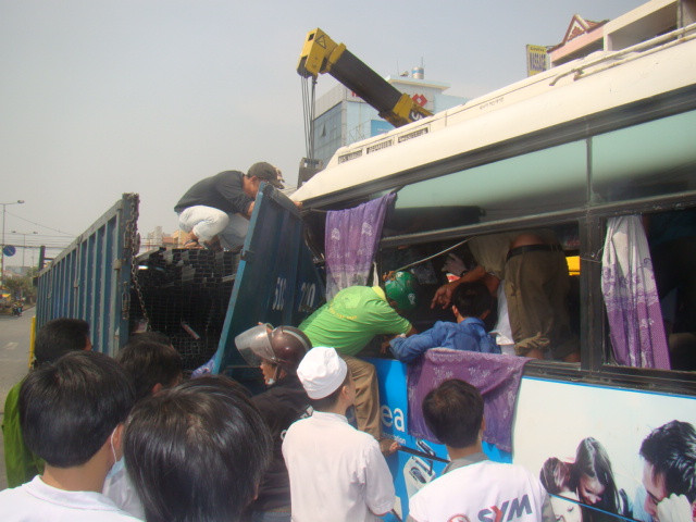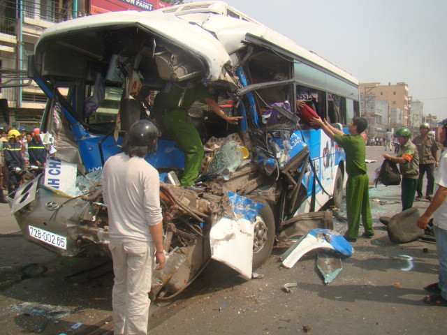 TPO - Tai nạn liên hoàn lúc 11h30 hôm nay, 31/12 trên quốc lộ 51, đoạn qua phường Long Bình Tân, Biên Hòa, Đồng Nai, khiến 13 người thương vong. Người dân phải lấy cưa máy phá xe cứu nạn nhân mắc kẹt.