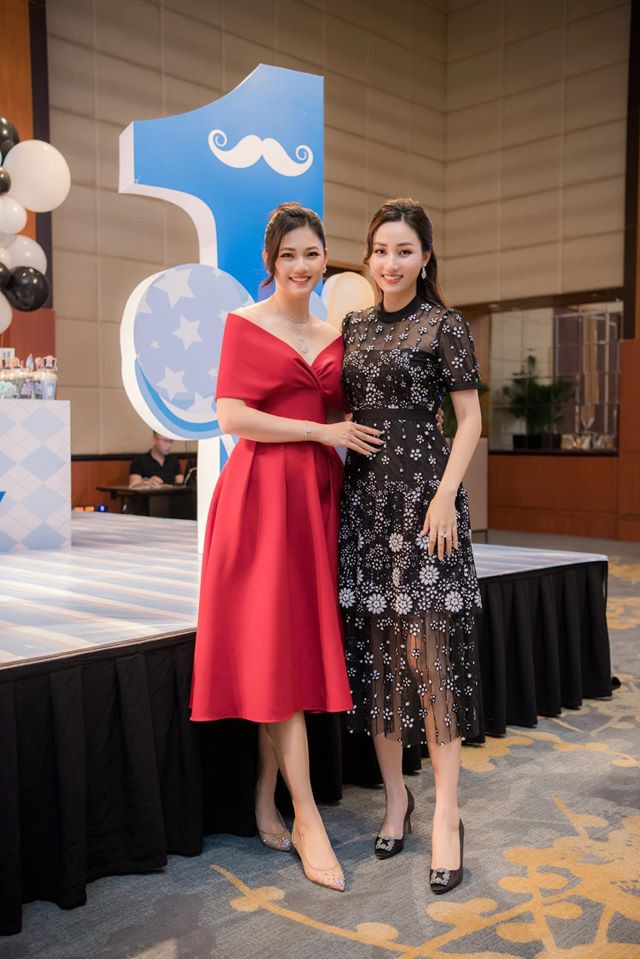 Á hậu Thanh Tú khoe sắc bên chị gái Trà My trong buổi tiệc mừng sinh nhật 1 tuổi của con trai.