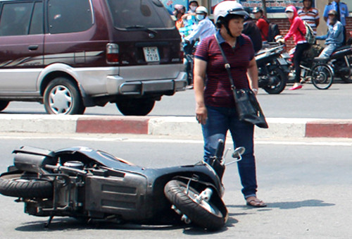 Vị trí xe máy và người mẫu ngã xuống đường, chấn thương đầu. Do địa điểm gặp nạn gần nhà nên người dân xung quanh nhận ra Mâu Thanh Thủy và báo tin cho gia đình. Cô đang được cấp cứu tại Bệnh viện 115.