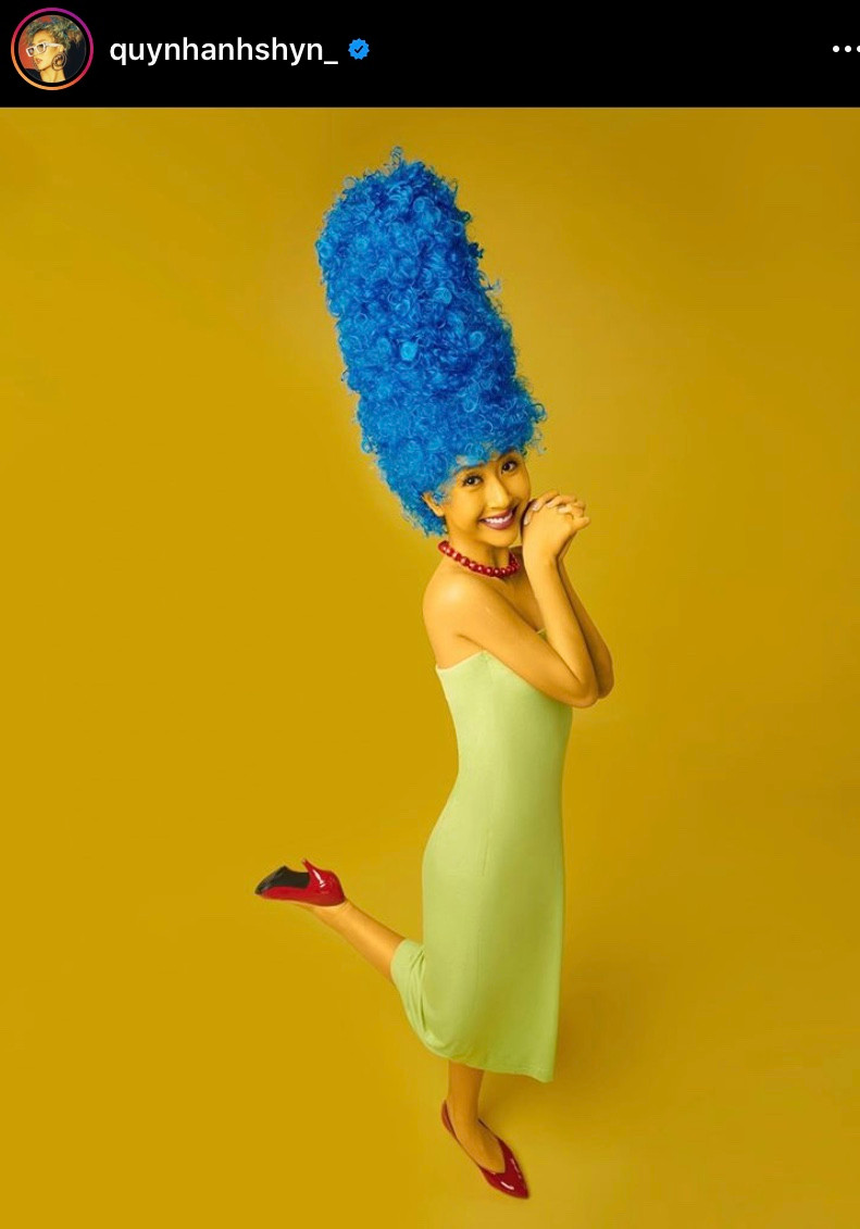 Quỳnh Anh Shyn đầu tư hẳn hai tạo hình cho mùa Halloween này. Tạo hình Jessica Rabbit quyến rũ, rực cháy trong Who censored Rogger Rabbit và tạo hình mama Simpson “vàng khè” hài hước.