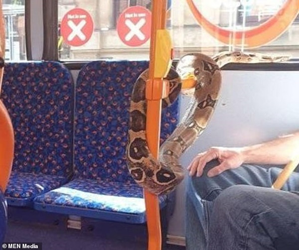 Một phụ nữ trên chuyến xe đó nói với tờ Manchester Evening News: “Ông ta để con rắn quấn quanh miệng và cổ, trông như đeo khẩu trang. Lúc đầu, chính tôi cũng nghĩ là ông ta đeo cái khẩu trang lạ mắt. Nhưng rồi “cái khẩu trang” đó… trườn xuống chỗ vịn tay trên xe buýt”.