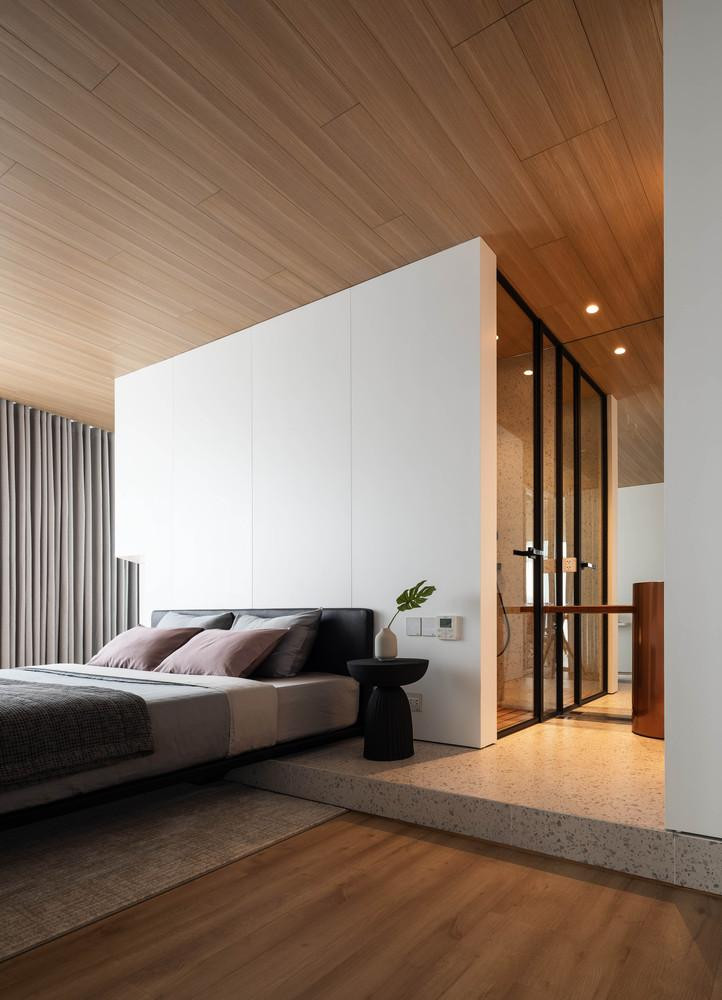 | Đối với phòng ngủ, kiến trúc sư sử dụng kính mờ làm vách ngăn phòng để mang lại tầm nhìn vô tận từ Đông sang Tây cũng như để gắn kết các thành viên trong gia đình với nhau. |