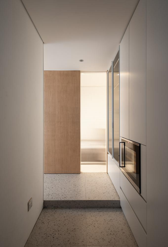 | Các kiến trúc sư lựa chọn thiết kế tối giản cho căn hộ này, lấy tông màu trắng làm chủ đạo để làm nổi bật màu sắc của ghế sofa và bàn ăn màu đen. |