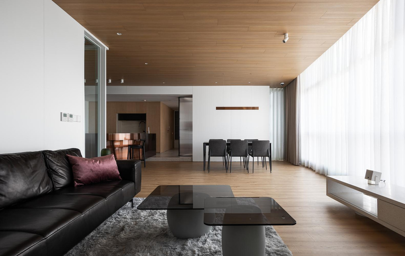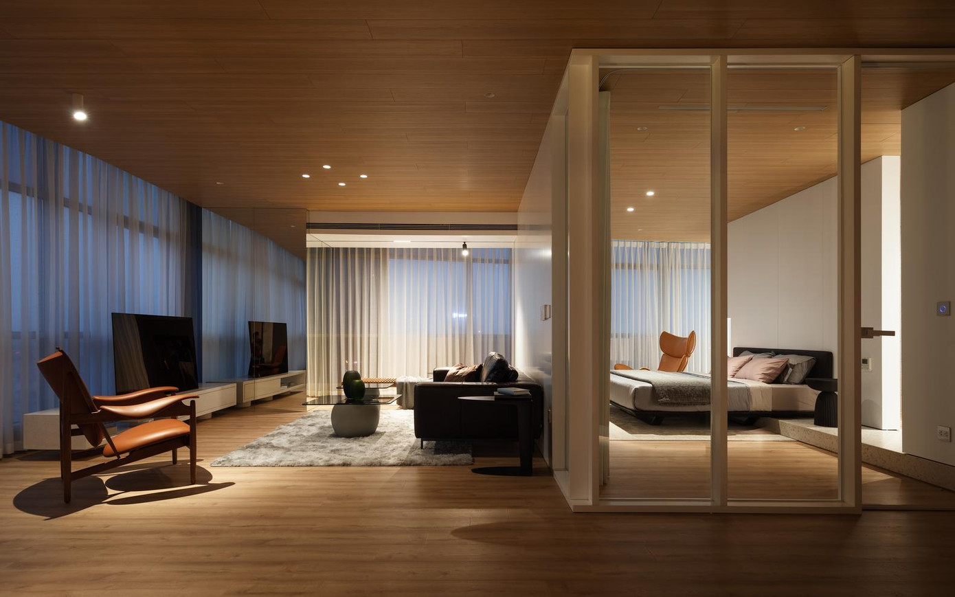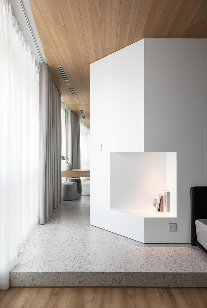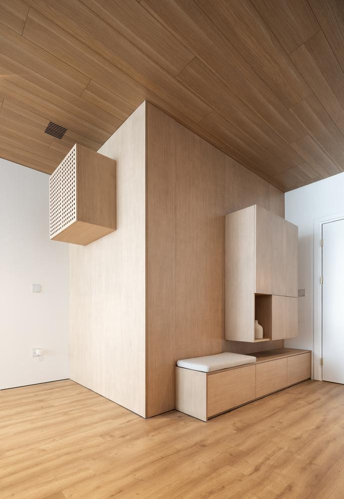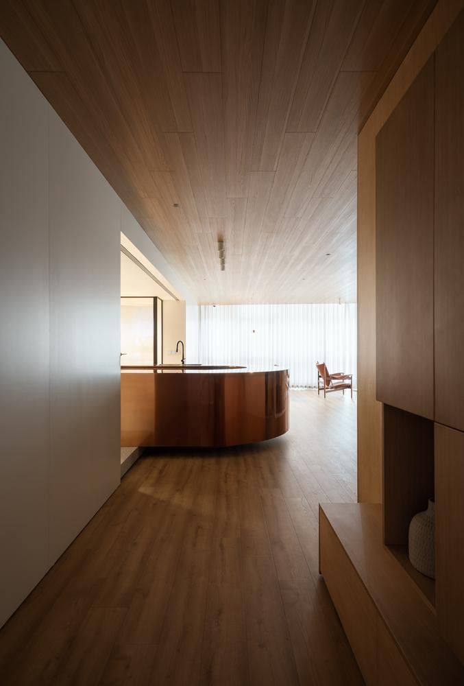 | Sàn và nhà đều được lát gỗ để tạo cảm giác ấm cúng cho căn hộ. |