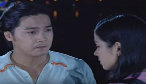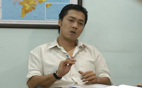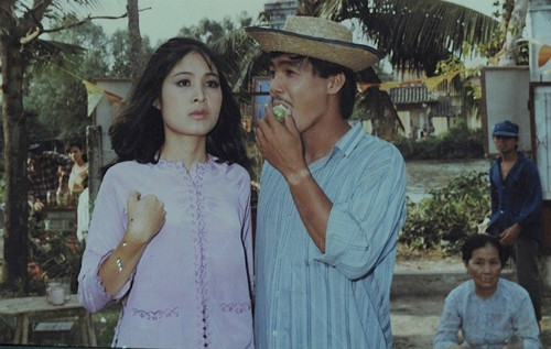Lý Hùng (phải) với làn da rám nắng trên trường quay phim "Võ sĩ bất đắc dĩ" cùng nghệ sĩ Hồng Vân những năm cuối 1990. Ảnh: Lữ Đắc Long.