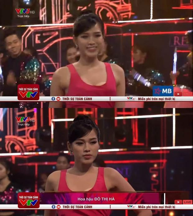 Hoa hậu Đỗ Thị Hà từng được khen với chiếc váy có thiết kế kín đáo mà vẫn khoe khéo được vóc dáng. Thế nhưng khi Đỗ Thị Hà bước đi, có lẽ do di chuyển mà miếng độn ngực bên trong váy đã bị xô lệch, nhô cao và lộ một phần ra ngoài váy. Tất nhiên là phải chú ý kỹ thì mới phát hiện ra điều này.