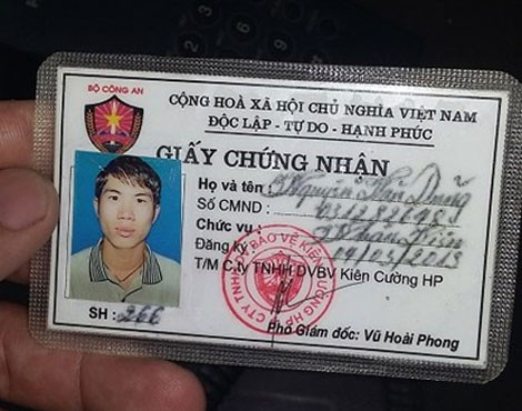 Xem mặt trong của thẻ Công an, anh Lăng thấy thông tin của thanh niên là Nguyễn Văn Dũng, nhân viên Công ty TNHH DV Kiên Cường Hải Phòng. Ngay lập tức, anh Lăng đã yêu cầu về Công an phường Đằng Lâm để giải quyết.