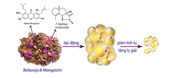 Hoạt chất sinh học thiên nhiên từ BelaunjaMangastin có trong Lic giúp giảm tích tụ và tăng ly giải mỡ trắng.