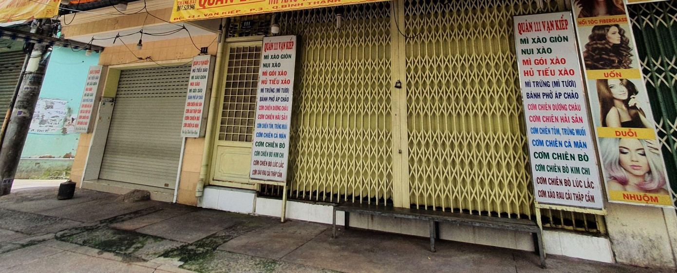 | Khu ẩm thực của giới trẻ trên đường Vạn Kiếp (quận Bình Thạnh), hàng quán đóng cửa im lìm... |