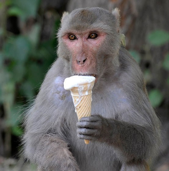 Khỉ ăn kem để hạ nhiệt tại vườn thú quốc gia. Trong những ngày qua, ban quản lý công trình này phải tìm nhiều biện pháp để bảo vệ các loài động vật vì thời tiết quá khắc nghiệt. Ảnh: Telegraph.