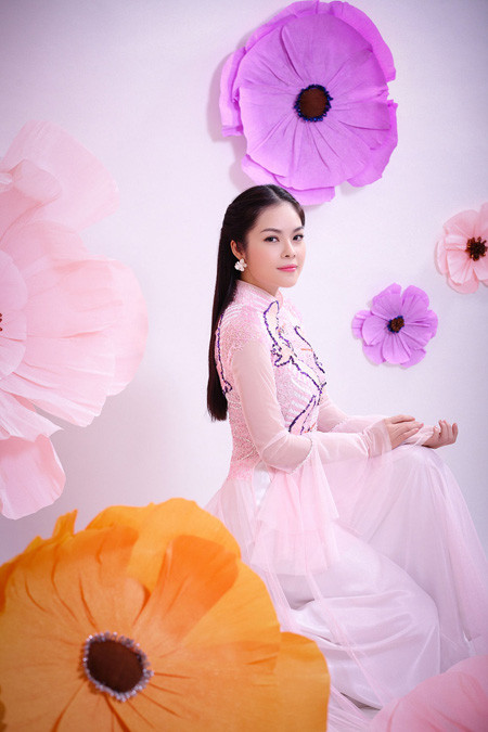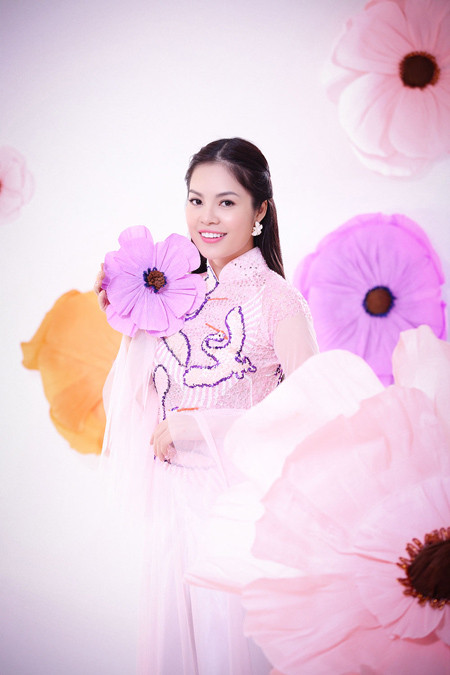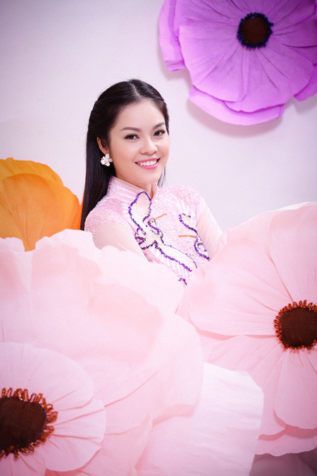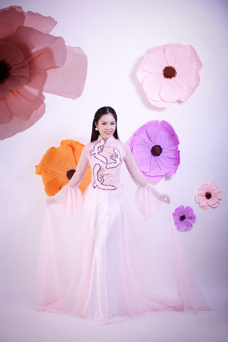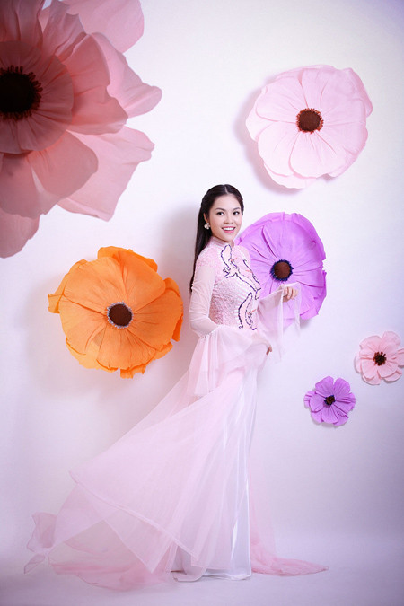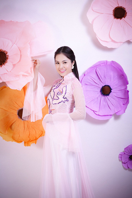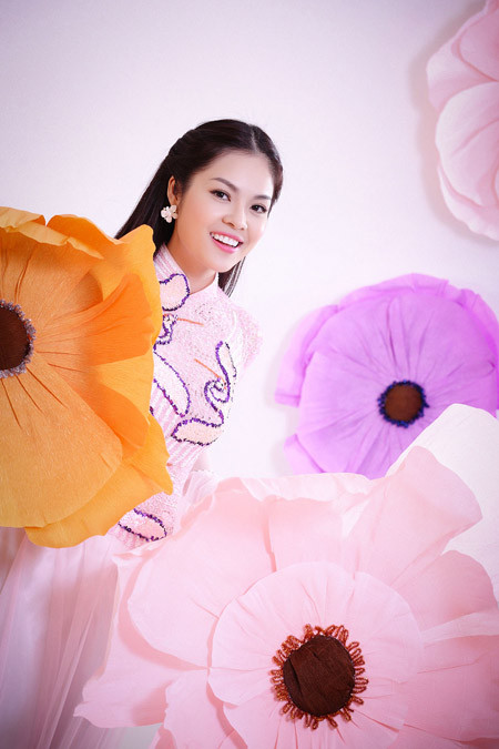 Á hậu điện ảnh khoe nụ cười rạng rỡ khi diện áo dài truyền thống để chào đón Năm Mới. Bộ ảnh do nhiếp ảnh DL Duy thực hiện, với sự hỗ trợ của chuyên gia trang điểm Duyên Nguyễn. Trang phục của nhà thiết kế Tuấn Hải.
