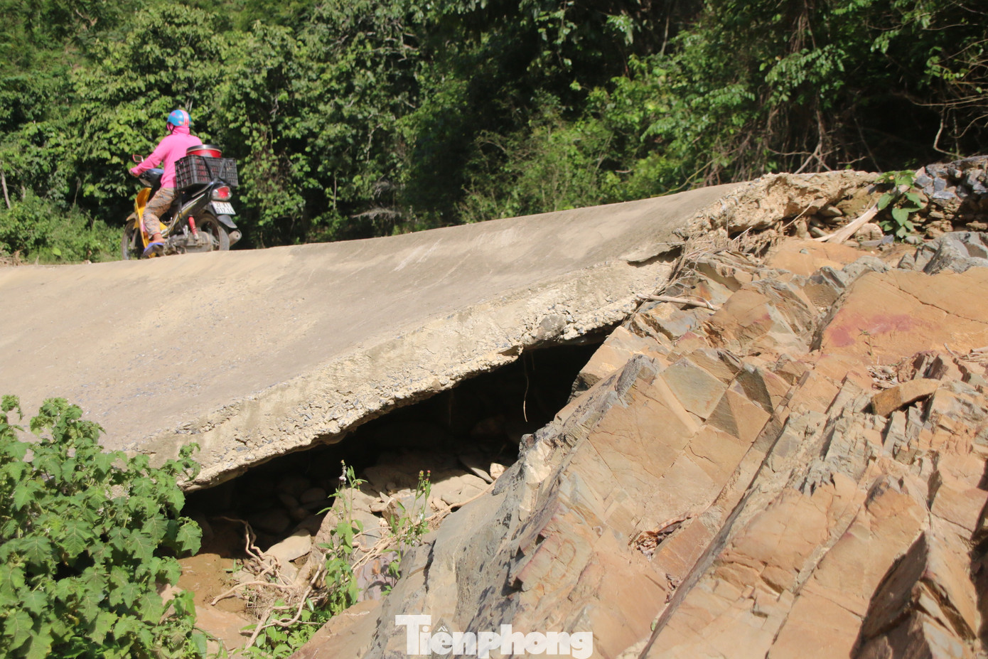 | Con đường độc đạo bị xuống cấp, sạt lở gây khó khăn, nguy hiểm cho người dân và phương tiện di chuyển trên tuyến đường này. |