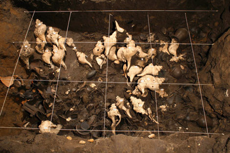 Tháng 11-2014, Sergio Gomez và đội của ông thông báo đã tìm thấy 3 căn phòng trong đường hầm, có lẽ được sử dụng làm nơi mai táng. Sau nhiều năm khám phá, đội của nhà khảo cổ Gomez tìm thấy cả một kho tàng hơn 70.000 món tạo tác cổ - bao gồm những bức tượng bằng ngọc bích, đồ gốm, một chiếc hộp đựng đầy những vỏ ốc được chạm khắc và những quả bóng cao su, cùng với nhiều món đồ khác nhau làm bằng gỗ - tại lối vào của mỗi căn phòng.
