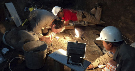 Không suy nghĩ nhiều, Sergio Gomez yêu cầu đội khảo cổ của ông tìm ngay một sợi dây thừng. Họ cột chặt một đầu dây quanh ngực Gomez và chầm chậm thả ông xuống hố sâu đã không có người hiện diện từ rất lâu. Lúc đó, Gomez xuống dưới độ sâu có lẽ ít nhất là 9m. Sergio Gomez nhớ lại: "Tôi không tưởng tượng nổi chúng tôi đã tìm thấy cái gì. Tôi không chợp mắt được trong suốt một tuần. Tôi biết có thể đây là khám phá vô cùng vĩ đại".