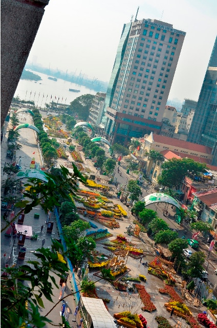 Năm nay, đường hoa Nguyễn Huệ (quận 1, TPHCM) trải dài từ đoạn trước tượng đài Bác (đường Lê Thánh Tôn) đến đường Tôn Đức Thắng với tổng chiều dài 720m. Đường hoa Tết sẽ được chia làm 3 phân đoạn chính: Đoàn kết - Nghĩa tình, Năng động - Sáng tạo và Hội nhập - Phát triển.