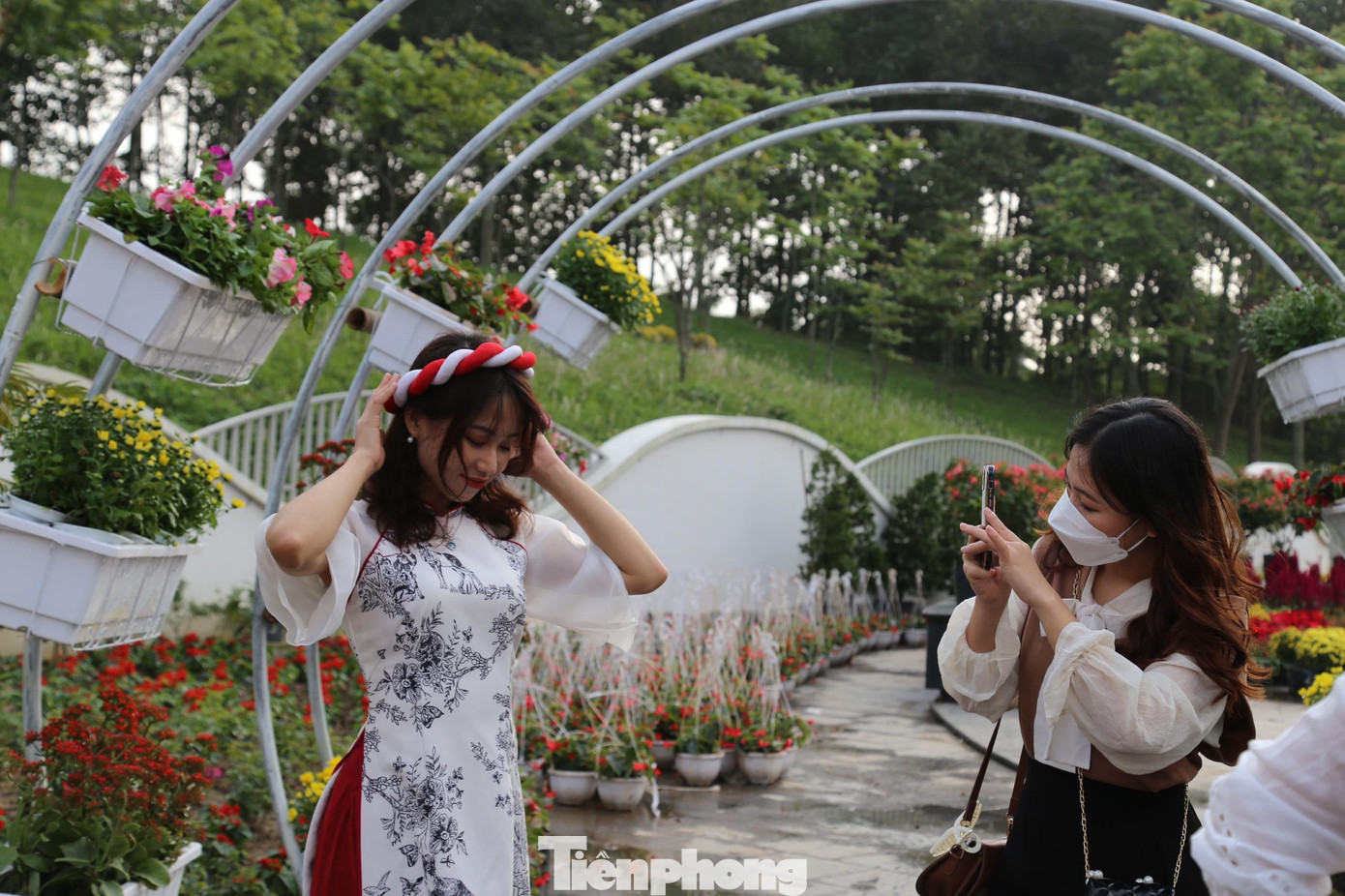 | Nhiều bạn trẻ check in tại đường hoa. |