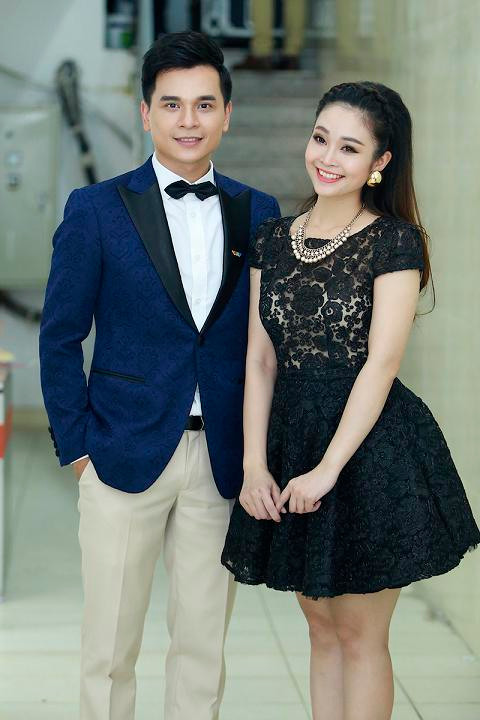 Hai MC của chương trình là Danh Tùng và Thùy Linh đẹp đôi trong hậu trường với trang phục ăn ý.