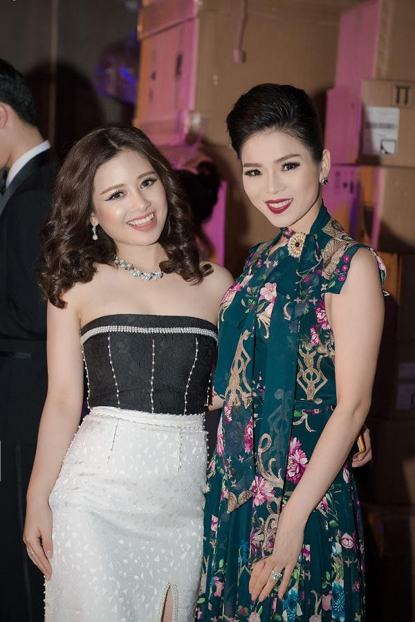 Cô cũng hội ngộ đàn chị Lệ Quyên trong hậu trường. Trong khi Dương Hoàng Yến trẻ trung khoe vai trần thì Lệ Quyên đằm thắm và không kém phần quyến rũ với váy hoa nữ tính.