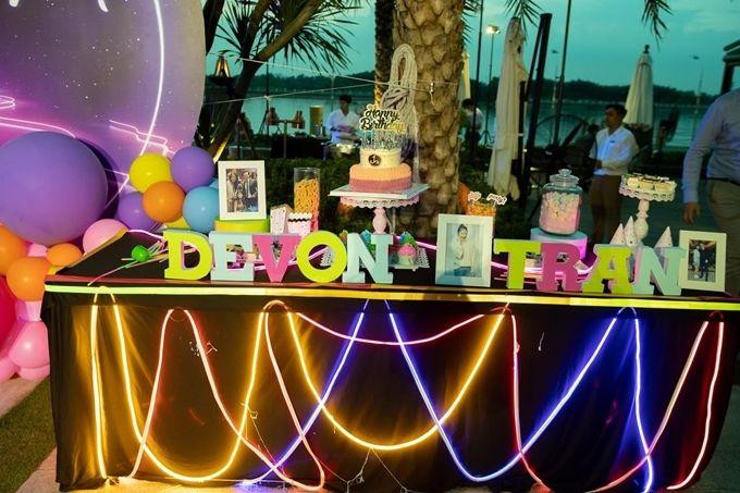 Tiệc sinh nhật tuổi 12 của "công chúa nhỏ" nhà Trương Ngọc Ánh - bé Devon thu hút sự chú ý của netizen bởi độ hoành tráng. Không gian tiệc diễn ra tại một nhà hàng sang trọng với sân khấu được trang trí bằng pháo sáng và bóng bay. Bàn tiệc sinh nhật của Devon rực rỡ sắc màu với bánh kem cùng loạt ảnh nhóc tỳ chụp cùng bạn bè, bố mẹ.